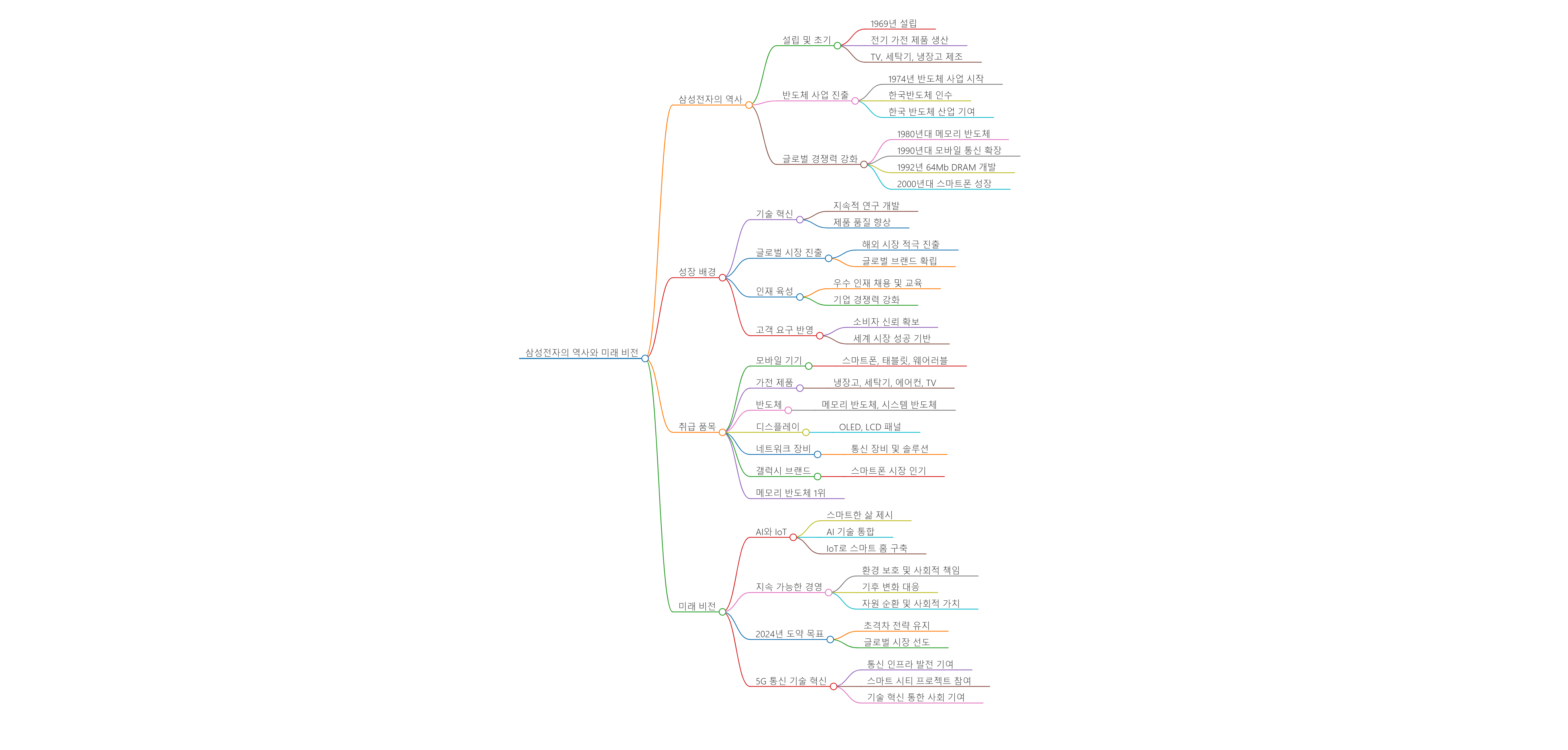삼성전자의 성장은 여러 요인에 의해 이루어졌습니다. 첫째, 기술 혁신입니다. 삼성전자는 지속적인 연구 개발을 통해 기술력을 강화하였고, 이는 제품의 품질 향상으로 이어졌습니다. 둘째, 글로벌 시장 진출입니다. 삼성전자는 해외 시장에 적극적으로 진출하여 글로벌 브랜드로 자리매김하였습니다. 셋째, 인재 육성입니다. 삼성전자는 인재를 중시하며, 우수한 인재를 채용하고 교육하여 기업의 경쟁력을 높였습니다.
