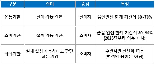 유통기한과 소비기한의 차이